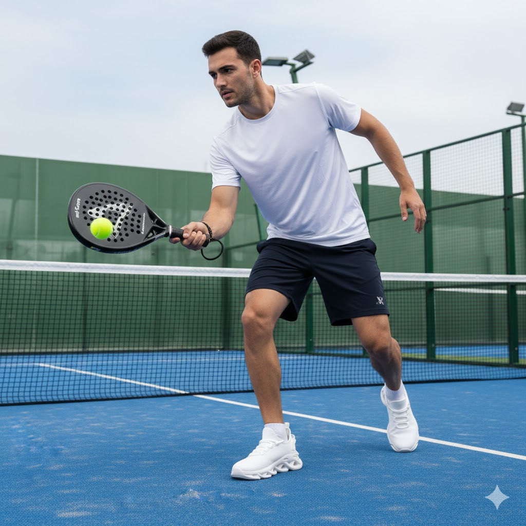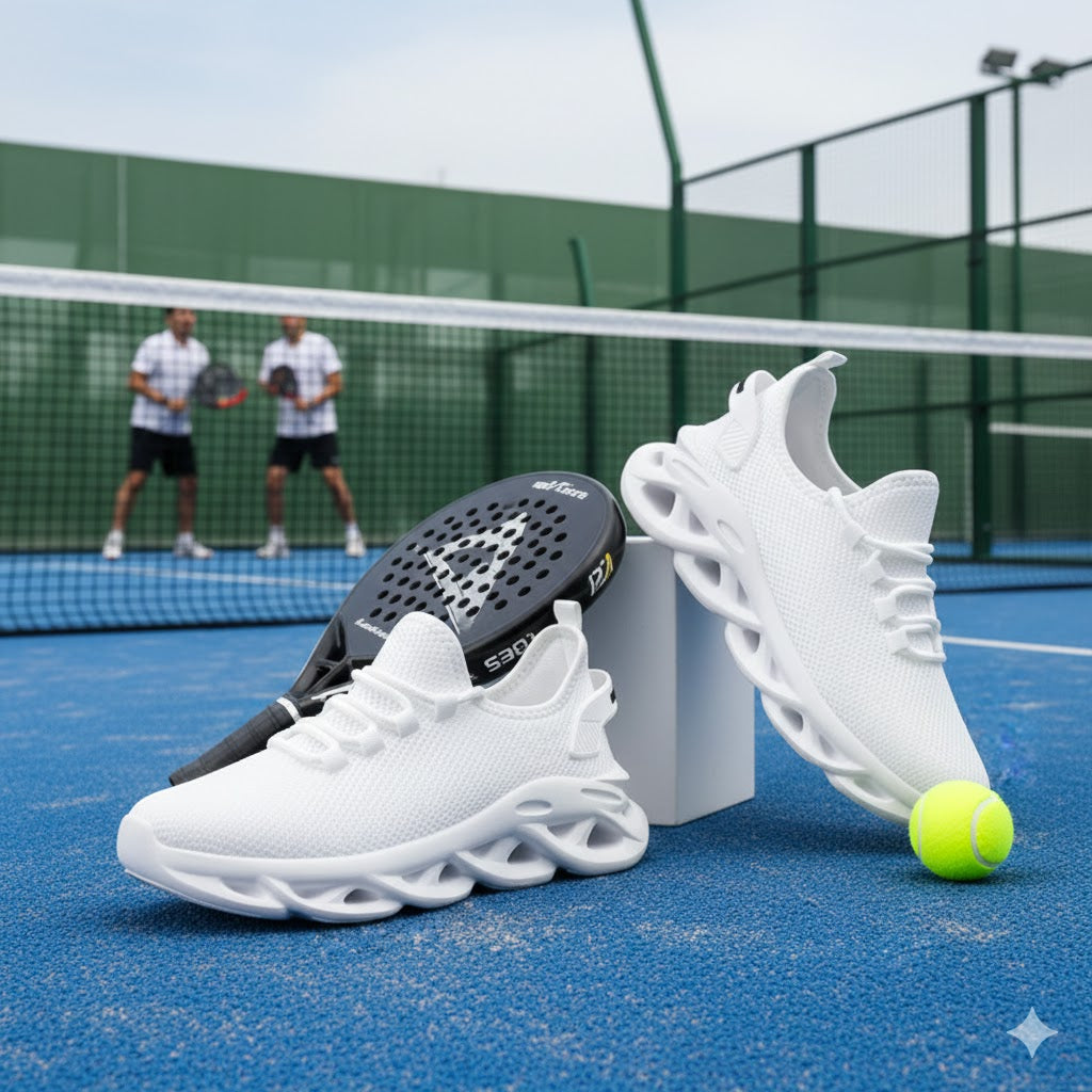Deze veelzijdige sportschoen combineert prestatie met stijl. Met een ademend meshdesign en licht gewicht constructie biedt hij optimaal comfort tijdens padel, workouts en hardlopen. De moderne zwarte uitvoering ziet er zo goed uit dat je hem zonder moeite van de sportbaan naar het dagelijks leven meeneemt. Perfect voor wie een schoen zoekt die zowel functioneel als fashionable is – één paar voor al je activiteiten.